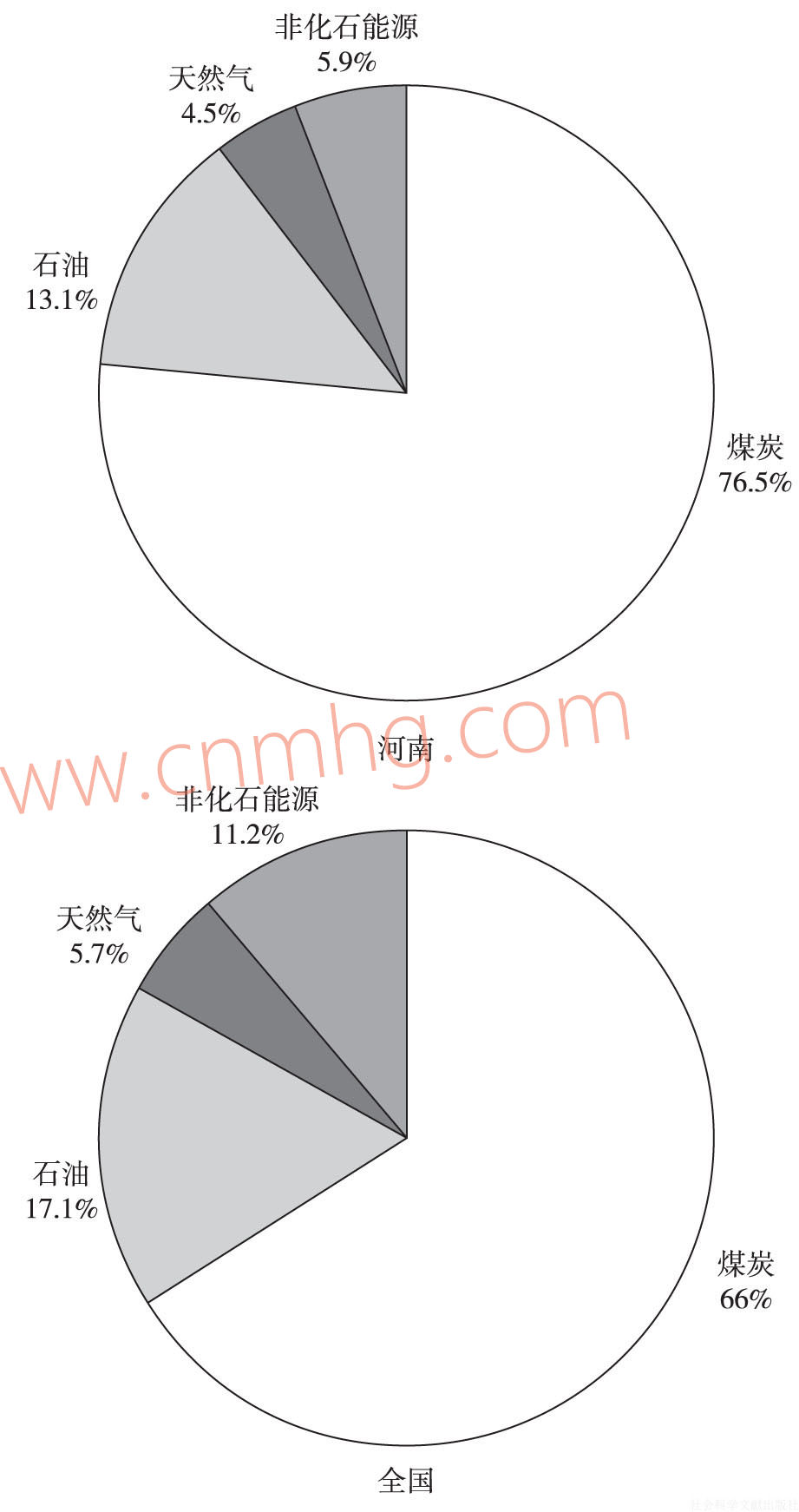 圖10 2015年河南省與全國一次性能源消費結(jié)構(gòu)對比