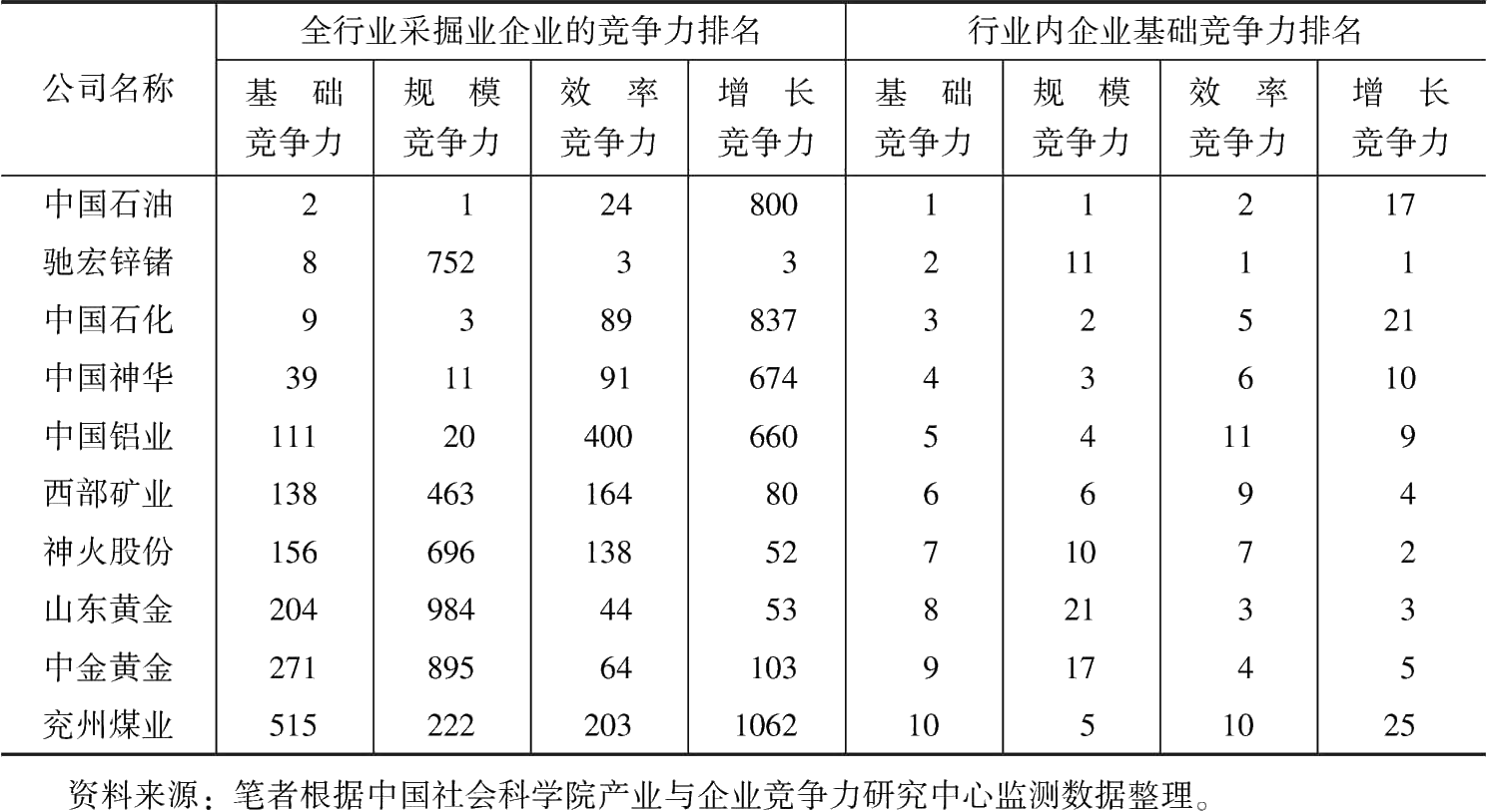 二 采掘與冶煉業(yè)企業(yè)競爭力分析