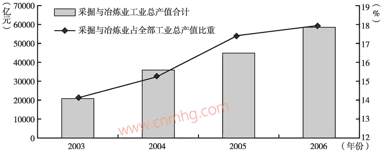 圖4-1 2003~2006年中國采掘與冶煉業(yè)總產(chǎn)值