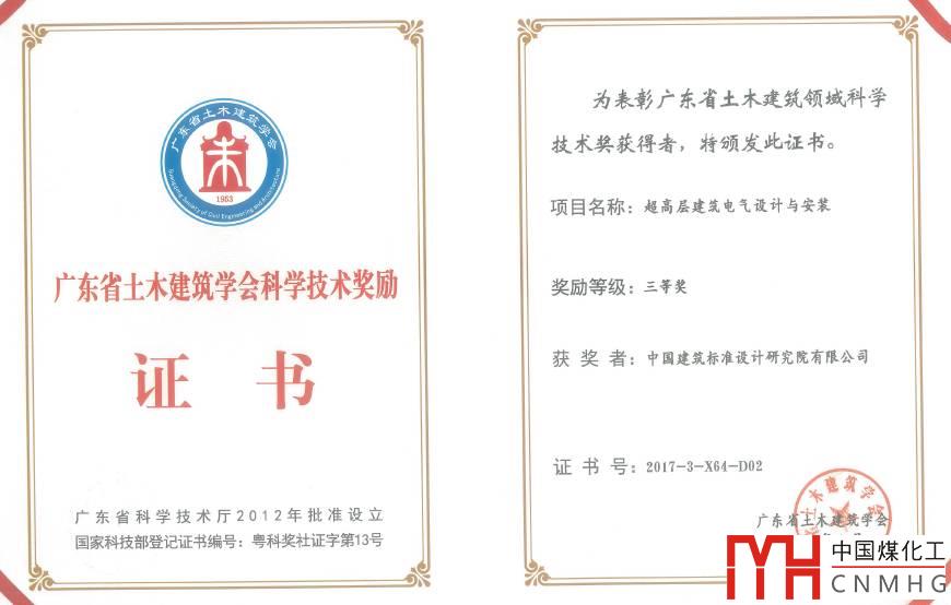 喜訊:《超高層建筑電氣設(shè)計(jì)與安裝》14D801獲廣東省科學(xué)技術(shù)三等獎(jiǎng)!