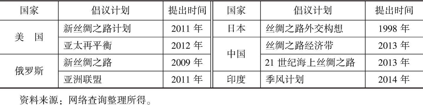 表1 各國關(guān)于絲綢之路的倡議計劃