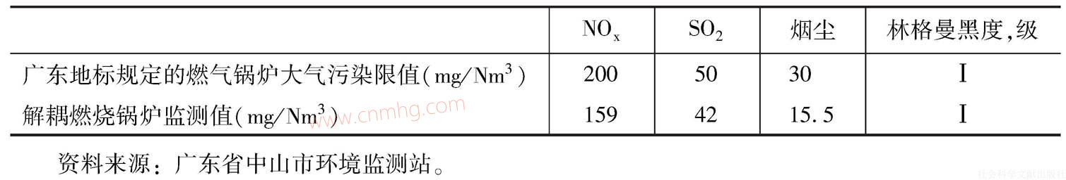 我們?cè)趶V東中山市小欖人民醫(yī)院使用的一臺(tái)4t/h的解耦燃燒鍋爐,運(yùn)行已有5年,鍋爐熱效率達(dá)到90%以上,[9]主要污染物排放指標(biāo)測(cè)得數(shù)據(jù)低于廣東省燃?xì)忮仩t大氣污染物標(biāo)準(zhǔn),也優(yōu)于國家規(guī)定排放標(biāo)準(zhǔn)(參見表1)。