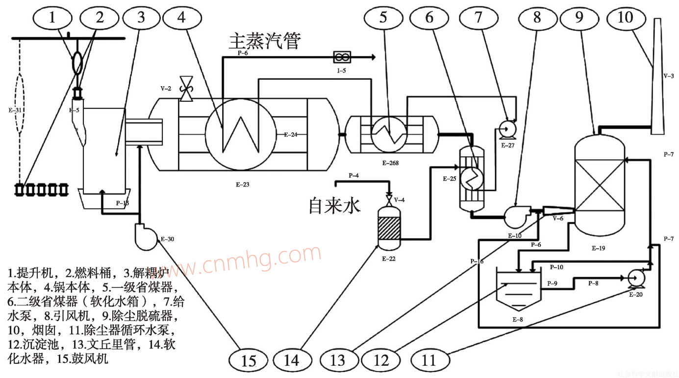 使用標(biāo)準(zhǔn)化的潔凈煤做燃料,采用解耦燃燒的新型高效鍋爐和脫硫除塵一體化煙氣超凈化裝置的蒸汽清潔生產(chǎn)系統(tǒng),實(shí)現(xiàn)背壓式汽輪機(jī)發(fā)電機(jī)組熱電聯(lián)產(chǎn),堅(jiān)持對(duì)污染前端治理、優(yōu)先集中清潔治理、實(shí)現(xiàn)全過程治理的治污流程,建立市場(chǎng)化建設(shè)、專業(yè)化運(yùn)營和管理的為中小企業(yè)服務(wù)的清潔能源生產(chǎn)服務(wù)中心,這五位一體構(gòu)成了一個(gè)完整的工業(yè)鍋爐清潔生產(chǎn)體系,能實(shí)現(xiàn)工業(yè)鍋爐清潔生產(chǎn),確保煤炭的清潔利用,推動(dòng)我國能源生產(chǎn)和消費(fèi)方式革命,這是貫徹黨的十八大精神,建設(shè)生態(tài)文明國家的實(shí)際行動(dòng)。圖2為煤炭洗選、“煤拔頭”熱解解耦燃燒、背壓發(fā)電全過程示意。