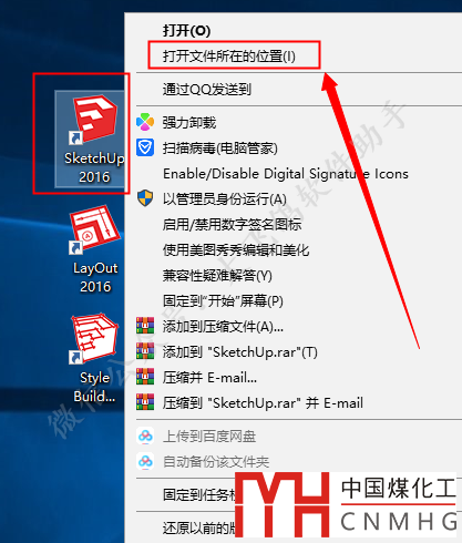 鼠標(biāo)右擊【SketchUp 2016】軟件圖標(biāo)選擇【打開文件所在的位置】