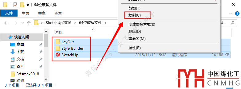 鼠標(biāo)右擊【SketchUP】選擇【復(fù)制】。