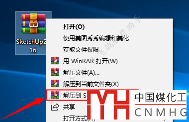 找到我們下載好的安裝包,鼠標(biāo)右擊【SketchUp2016】壓縮包選擇【解壓到SketchUp2016】