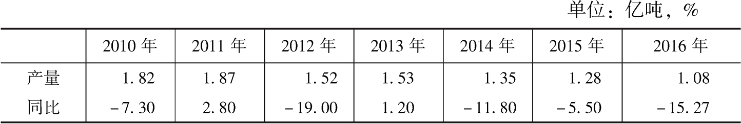 表1 2010~2016年河南省煤炭生產(chǎn)情況