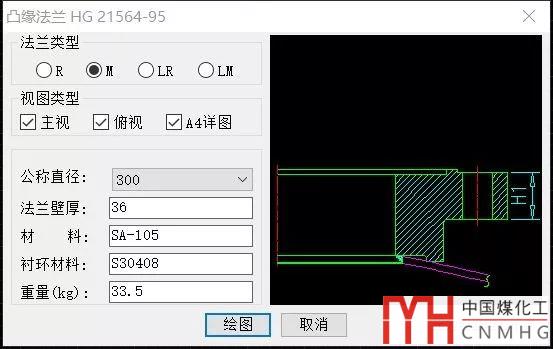 在VCAD有兩個凸緣繪制程序,均可以繪制1:1的凸緣,以及A4的凸緣制造圖。其中一個按照HG 21564-95,可以繪制R,M,LR,LM型凸緣。一個根據(jù)Pressure vessel Hand book繪制ASME的凸緣。