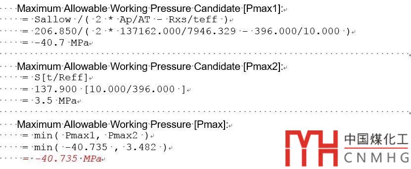 檢查一下計算書,由于是大開孔,程序按照ASME VIII I 1-10計算。在計算過程中因為Pmax1等于負值,導(dǎo)致Pmax為負值,所以Pmax永遠小于設(shè)計壓力,從而導(dǎo)致無論如何都不通過。