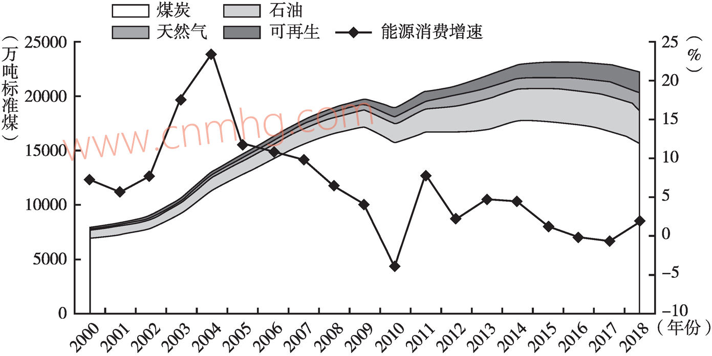 圖2 2000~2018年河南能源消費情況