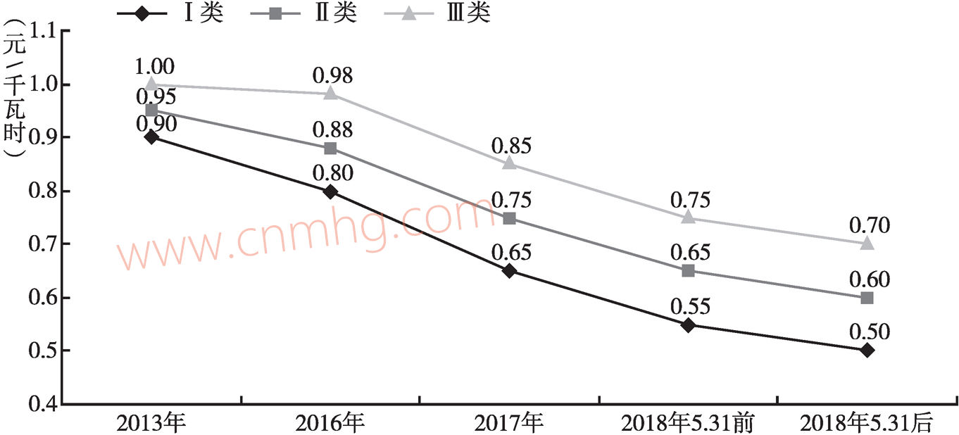 圖10 光伏電站標桿上網(wǎng)電價變化(河南為III類地區(qū))