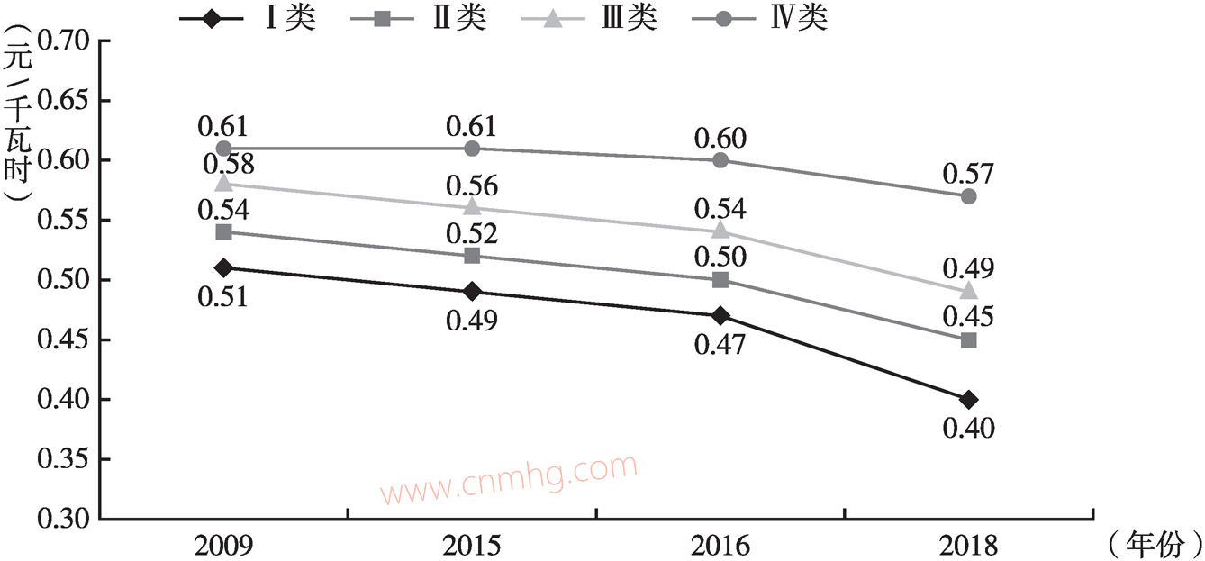 圖9 風(fēng)電標桿上網(wǎng)電價變化(河南為IV類地區(qū))