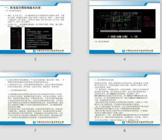 附件大?。?.92MB所屬分類:BIM資料分享會員:芳華分享時間:2021-12-17最后更新:資源簡介/截圖:內(nèi)容摘要:學(xué)習(xí)主題 基本內(nèi)容 二、綜合圖繪制基本要求 三、綜合圖排布基本原則 四、綜合圖繪制的過程控制 五、綜合圖繪制基本技巧 六、常見問題解決 七、設(shè)計(jì)常用參數(shù)匯總 八、實(shí)例解析一、繪制基本內(nèi)容 (1)綜合圖內(nèi)容劃分 ·通常,從專業(yè)上分:一份完整的圖包括空調(diào)風(fēng)專業(yè)圖、空調(diào)水專業(yè)圖、防排煙專業(yè)圖;強(qiáng)電專業(yè)圖(包括動力,照明),弱電專業(yè)圖(電視電話,綜合布線);給排水專業(yè)圖;部分項(xiàng)目還有工藝專業(yè)(包括壓縮空氣,真空,氮?dú)庀到y(tǒng)) 從內(nèi)容上分:一份完整綜合圖包括:綜合管線平面圖,圖例,施工說明,剖面圖,大樣圖。(2)制定繪圖標(biāo)準(zhǔn)·a.專業(yè):AR建筑,ST結(jié)構(gòu),EL電氣,ULV弱電,HV暖通,PL給排水,F(xiàn)P消防 ·系統(tǒng):電氣:PW動力,LT照明,OT插座;弱電:IT綜合布線,SC安防,F(xiàn)A消防報(bào)警,PA廣播,BA自控;暖通:DUCT風(fēng)系統(tǒng),PIPE水系統(tǒng);結(jié)構(gòu):BEAM結(jié)構(gòu)梁。建筑,給排水,消防因單一不再分系統(tǒng)。 ·層別:BF**地下室,1F一層,2F二層,3F三層,4F四層;F*層;RF屋頂 ·b.綜合圖圖層顏色設(shè)置 ·空調(diào)、通風(fēng)管道:白色;防排煙管道設(shè)置黃色,打印成黑色 空調(diào)水管道:青色;電氣橋架:藍(lán)色,電氣母線:洋紅 給排水管道:綠色;弱電橋架:品紅色 消防管:紅色;建筑底圖:8號色:梁結(jié)構(gòu)圖:30號色 c.字高設(shè)置:通常綜合圖設(shè)置字高為400mm或者450mm,當(dāng)管線密集時可僅設(shè)置300mm,以綜合圖簡潔明了為宜。 d.各專業(yè)平面圖的制作:圖紙信息中:圖紙編號為綜合設(shè)計(jì)圖紙編號,圖名為與原設(shè)計(jì)圖名對應(yīng)的綜合圖,電子文件號為DWG文件名;出圖比例設(shè)置成1:100或者1:150,繪制過程中,盡量把那些沒用的東西刪掉和清理,以減小文件大小?!.綜合圖管理: ·當(dāng)綜合圖以外部參照的形式將相關(guān)層各專業(yè)的圖紙?zhí)自谝黄鹦纬删C合管線圖,關(guān)掉一些沒用的層,并將不同專業(yè)或不同系統(tǒng)的管線設(shè)置成不同的顏色以便于區(qū)分。 ·f.剖面繪制: ·將一些管線密集的區(qū)域、高低跨變換位置區(qū)域、標(biāo)準(zhǔn)樓層典型位置做剖面圖,剖面圖直接在綜合圖外圍做。剖面圖中標(biāo)注文字高度取150,管道標(biāo)識盡量選擇專業(yè)平面圖中的縮寫標(biāo)識,要簡潔,盡量不采用漢字。通常簡寫如下,采用長引線外圍整齊排布。 空調(diào)系統(tǒng):SA空調(diào)送風(fēng);RA空調(diào)回風(fēng);EA排風(fēng);CS/R冷水供回,CTS/R冷卻水供回,HS/R熱水供回;CW冷凝水; 給排水:J給水;Y雨水;F廢水;W污水;T通氣管;YF污水泵排水 電氣:LV強(qiáng)電橋架;HV高壓橋架,BUSBAR母線; 弱電:IT,SC,FA,PA,BA分別代表不同系統(tǒng)橋架。 g.出圖方式可分兩種:一種是直接在模型里邊出圖,模型里邊出圖按1:1設(shè)置,調(diào)整出圖圖框?yàn)锳0或者A1標(biāo)準(zhǔn)圖框;布局出圖時,在布局里面分別設(shè)置平面圖和剖面圖,如果剖面圖在一張圖面上占不下,可再設(shè)一個布局。綜合平面圖出圖比例是1:150,剖面圖是1:50;·五.做綜合圖時不要僅圍繞某一個專業(yè)去考慮問題,要綜合統(tǒng)一考慮,一個重要的考慮因素就是從成本角度去考慮管線布置走向。 i.繪制過程中注意:注意管道壁厚和保溫厚度;注意無壓排水管的坡度;注意支吊架的高度;凈空要求:包括支吊架、保溫厚度、龍骨高度 二、綜合圖繪制基本要求 1.對建筑物內(nèi)的機(jī)電管線進(jìn)行最佳排位,最大程度減少管道所占空間,提高天花的吊頂高度。要求我們具備空間意識,對凈高尤其重視。凈高計(jì)算時,要按層高-梁高=凈高。計(jì)算機(jī)電凈高時,有其注意扣除地面裝飾完成面及管線支吊架占據(jù)空間,尤其是在前期復(fù)核酒店走廊,大堂等對標(biāo)高嚴(yán)格要求而且管線較多區(qū)域的機(jī)電凈標(biāo)高時,更加需要重視。通常,設(shè)計(jì)會提供梁下700左右空間作為機(jī)電管線布置空間,可以根據(jù)現(xiàn)場管線實(shí)際進(jìn)行調(diào)整。 .繪制過程考慮工藝的安裝美觀性。繪制過程需從整體出發(fā),繪制過程中遵循平衡、分散原則。避免管線過分集中,或者機(jī)電管線空間浪費(fèi)。 ③.綜合圖繪制中必要的剖面補(bǔ)充。有效地避免了機(jī)電管線在平面、立面上的交叉和沖突,以保證施工的順利進(jìn)行,節(jié)約工程成本。通常繪制過程中,在密集點(diǎn)處繪制機(jī)電綜合剖面圖,詳述密集處管道如何排布。
