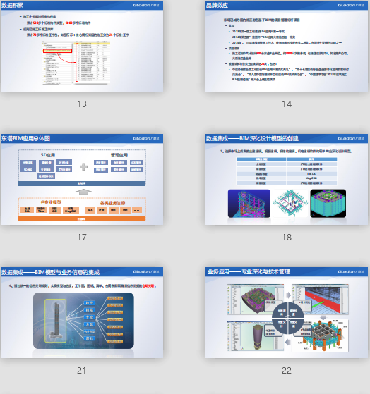 附件大?。?.52MB所屬分類:BIM資料分享會員:芳華分享時間:2021-09-25最后更新:資源簡介/截圖:項目概況——廣州周大福金融中心(東塔)? 廣州CBD珠江新城 ? 核心區(qū)中軸線上 ? 占地面積2.6萬m2 ? 建筑總高度530m ? 共116層 ? 建筑總面積50.77萬m2 工期縮短,材料損耗低于行業(yè)基準值30~35%,5D綜合應(yīng)用均帶來大幅的成本節(jié)約 建立了以BIM模型為中心的設(shè)計協(xié)調(diào)管理機制 充分應(yīng)用BIM進行施工模擬,保障超高層復(fù)雜節(jié)點、大型設(shè)備的施工與安裝順利進行 開創(chuàng)了國內(nèi)超高層施工應(yīng)用BIM集成數(shù)據(jù)庫的先河,形成切實可行的BIM實施方法,積累形成企業(yè)內(nèi)部大數(shù)據(jù)庫,復(fù)制推廣到其他項目 結(jié)合企業(yè)物質(zhì)采購準入名單,利用軟件特有功能,初步建立了企業(yè)級機電BIM構(gòu)件和 東塔項目成為企業(yè)BIM的人才培養(yǎng)基地 – 將BIM技術(shù)引入項目精細化管理,實際工期比原計劃提前60天完成,主塔樓標準層施工平均4.5天一層。 – 預(yù)估節(jié)約成本(保守估計人/機每天20萬):60 * 20萬 = 1200萬– 由于工期提前,計劃向業(yè)主申請工期提前獎 – 材料的損耗率3%,低于行業(yè)基準值30%-35% – 東塔預(yù)計消耗鋼筋約9萬噸,保守估計節(jié)約成本:(90000 * 1.5%) * 3000 = 4,050,000 – 優(yōu)化技術(shù)方案:通過精確的建模及施工模擬,對大工況穿插、及重大等20多項方案模擬進行優(yōu)化等,避免了現(xiàn)場大型返工; – 減少了變更:通過碰撞檢測、模擬,提出300多條優(yōu)化建議,減少過程變更; – 精確的物料計劃減少二次搬運和浪費:利用模型提取材料用量,準確率達到98%以上,結(jié)合進度計劃實現(xiàn)物料的準確進場,減少了材料二次搬運和多余浪費; – 采購:材料計劃的準確性縮短物流和庫存周期,提高了場地使用效率,即節(jié)約成本也保證了工期 – 人工:提供準確的勞動力計劃,確保資源的平衡,勞務(wù)外包的峰值人數(shù)比計劃減少10% 國內(nèi)第一個成功實施BIM+PM系統(tǒng)(GBIMS)的超高層項目 改變溝通方式提高溝通效率:實時收集和共享各業(yè)務(wù)信息,直線溝通方式減少會議20%以上 工作面管理:有效解決不同專業(yè)分包在同一個工作面的交叉作業(yè)管控難題 縮短成本核算周期:按季度執(zhí)行 VS 按月執(zhí)行 減少工程量審核/申報工作量:原來10個預(yù)算員尚不能及時完成階段審核 VS 3人一周內(nèi)可完成審核; 提高圖紙查詢效率:模型、圖紙、變更建立關(guān)聯(lián),快速準確定位所需圖紙(東塔已有上萬份圖紙,700多份變更) 充分應(yīng)用BIM進行施工模擬,保障超高層復(fù)雜節(jié)點、大型設(shè)備的施工與安裝順利進行 ? 利用MagiCAD機電深化設(shè)計,施工過程中所有管線設(shè)備安裝基本一次成活 ? 鋼結(jié)構(gòu):優(yōu)化12類、500多個伸臂桁架巨型柱節(jié)點,施工中基本未出現(xiàn)重大返工 ? 大型施工組織措施進行優(yōu)化,施工過程沒發(fā)生較大幅度調(diào)整 ? 頂摸與外框鋼結(jié)構(gòu)施工穩(wěn)定保持4~5層的高差,而一般行業(yè)水平為5~8層,施工節(jié)奏更緊湊 開創(chuàng)了國內(nèi)超高層施工應(yīng)用BIM集成數(shù)據(jù)庫的先河,持續(xù)積累將形成企業(yè)內(nèi)部知識庫和大數(shù)據(jù)庫 – 多專業(yè)施工深化設(shè)計BIM建模標準 ? 機電/鋼結(jié)構(gòu)/土建/幕墻/裝修 – 總結(jié)形成BIM項目實施方法論,已經(jīng)成功復(fù)制推廣到其他項目– 施工企業(yè)BIM標準構(gòu)件庫 ? 累計500多個標準構(gòu)件類型,9000多個標準構(gòu)件 – 超高層施工標準工序庫 ? 累計70多個標準工序包。如圖所示:核心筒桁架層的施工分為21個標準工序 – 獎項 ? 2013年第一屆工程建設(shè)大賽一等獎 ? 2014年第三屆”龍圖杯“BIM應(yīng)用大賽施工組一等獎 ? 2014年,“百層高樓關(guān)鍵施工技術(shù)”獲得國家科技進步獎二等獎,東塔是主要依托項目之一 – 項目觀摩 ? 施工過程中共計接待300余家企事業(yè)單位、約2000人次的參觀。包括住建部領(lǐng)導(dǎo)、知名房產(chǎn)公司、 大型施工企業(yè)等 – 被邀請參與各類主題演講近20次,包括: ? 中建協(xié)首屆全國工程建設(shè)BIM應(yīng)用大賽頒獎典禮”、“第十七屆建設(shè)行業(yè)企業(yè)信息化應(yīng)用發(fā)展研討 交流會”、“第八屆中國智慧城市工程建設(shè)BIM技術(shù)研討會”、“中國建筑學會2013年建筑施工 BIM應(yīng)用論壇”等大會上做主題演講