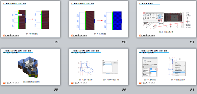 附件大?。?.83MB所屬分類:BIM資料分享會員:芳華分享時間:2021-09-24最后更新:資源簡介/截圖:5.1 一層外墻繪制5.2 一層內(nèi)墻繪制5.3 首層繪制 5.3.1 插入門5.3.2 插入窗5.4 門窗底高度設置5.5.2 編輯5.6 編輯子圖元、修改衛(wèi)生間樓板5.7 構造層的拆分、合并、指定5.8 拆分面及填色5.9創(chuàng)建二層外墻、內(nèi)墻、門窗、樓板 5.9.1 復制二層外墻5.9.2 編輯二層外墻5.9.3 創(chuàng)建二層內(nèi)墻5.9.4 插入二層門窗5.9.5 創(chuàng)建二層樓板5.10 墻飾條、分隔條5.11 創(chuàng)建三層相關構件 5.11.1 繪制三層主5.11.2 繪制三層女兒墻5.11.4 創(chuàng)建三層樓板