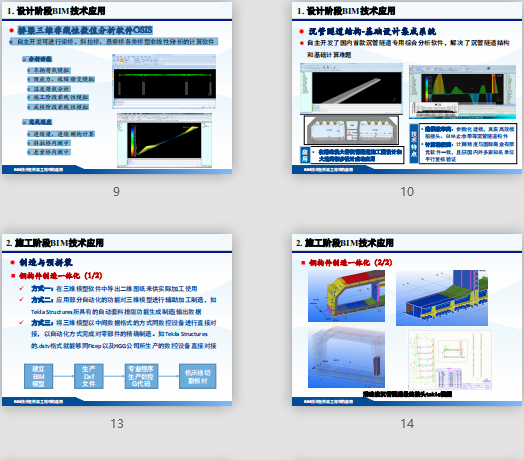 附件大?。?2.34MB所屬分類:BIM資料分享會員:芳華分享時間:2021-09-23最后更新:資源簡介/截圖: 1. 設(shè)計階段 2. 施工階段技術(shù)應(yīng)用 3. 運(yùn)維階段BIM技術(shù)應(yīng)用 4. 軟件及標(biāo)準(zhǔn) 5. 發(fā)展展望 通過BIM協(xié)同設(shè)計系統(tǒng),將設(shè)計人員按專業(yè)分工,統(tǒng)一納入系統(tǒng)進(jìn)行協(xié)同設(shè)計,可以提高設(shè)計信息流轉(zhuǎn)效率協(xié)同設(shè)計系統(tǒng)管理整個設(shè)計流程,并可與企業(yè)其他信息管理系統(tǒng)集成,形成設(shè)計企業(yè)信息化的構(gòu)架 實(shí)現(xiàn)常規(guī)標(biāo)準(zhǔn)化橋梁的參數(shù)化,復(fù)雜特大橋梁主要構(gòu)件的參數(shù)化 建立三維上、下部構(gòu)件的標(biāo)準(zhǔn)化庫,如箱梁、墩身、基礎(chǔ)等。根據(jù)原始基 礎(chǔ)資料及線路設(shè)計資料,自動化、批量化完成全線橋梁的設(shè)計建模實(shí)現(xiàn)橋梁與線路、地形、地質(zhì)的關(guān)聯(lián)化,通過輔助軟件保證設(shè)計變更的快速完成,通過將模型和實(shí)際環(huán)境的融合實(shí)現(xiàn)設(shè)計方案比選 傳統(tǒng)設(shè)計中,圖紙模型與計算模型相互割裂 研發(fā)參數(shù)化建模軟件,通過參數(shù)化建模的方式生成三維模型;同時模型能導(dǎo)入分析軟件進(jìn)行分析計算,實(shí)現(xiàn)高效的全橋設(shè)計和分析計算過程 將BIM三維模型局部導(dǎo)入有限元計算軟件計算,通過計算結(jié)果修訂三維模型,從而實(shí)現(xiàn)建模和分析計算的高效統(tǒng)一 自主開發(fā)可進(jìn)行梁橋、斜拉橋、懸索橋各類橋型非線性分析的計算軟件 車輛荷載模擬、預(yù)應(yīng)?、收縮徐變模擬、溫度荷載分析、施?階段非線性模擬、成橋階段非線性模擬 連續(xù)梁、連續(xù)剛構(gòu)計算、斜拉橋內(nèi)測中、懸索橋內(nèi)測中