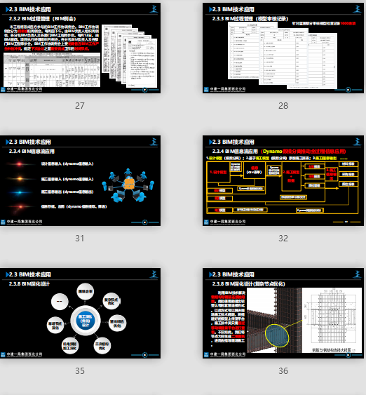 附件大?。?5.28MB所屬分類:BIM資料分享會(huì)員:芳華分享時(shí)間:2021-09-11最后更新:資源簡(jiǎn)介/截圖: 2005年先后開(kāi)始嘗試應(yīng)用單專業(yè)三維模型,集團(tuán)總部于2016年正式實(shí)體化運(yùn)行,成立BIM工作站。下設(shè)綜合管理組、工程進(jìn)度管理、工程安全組、工程總平面管理組、工程質(zhì)量管理組、工程造價(jià)管理組、機(jī)電施工組等14個(gè)專業(yè)小組在各子公司。集團(tuán)總部根據(jù)項(xiàng)目部的BIM技術(shù)應(yīng)用,根據(jù)工程特點(diǎn)在全集團(tuán)范圍內(nèi)進(jìn)行各專業(yè)資源調(diào)配,滿足項(xiàng)目實(shí)施過(guò)程中對(duì)人員、軟件、技能培訓(xùn)、策劃應(yīng)用等各方面需求。集團(tuán)到“十三五”末,企業(yè) 80%以上從業(yè)人員能夠掌握并熟練應(yīng)用BIM技術(shù);持續(xù)推進(jìn)BIM技術(shù)在集團(tuán)的應(yīng)用發(fā)展,確保在“十三五”末期在施項(xiàng)目BIM技術(shù)C級(jí)應(yīng)用覆蓋率達(dá)到100%、B級(jí)應(yīng)用覆蓋率達(dá)到60%,A級(jí)應(yīng)用覆蓋率達(dá)到20%。項(xiàng)目考核大類:施工總承包項(xiàng)目、基礎(chǔ)設(shè)施項(xiàng)目、安裝項(xiàng)目、設(shè)計(jì)院項(xiàng)目。 2016年12月5日公司第五次總經(jīng)理辦公會(huì)審議成立“中建一局集團(tuán)西北公司BIM中心”。 LOGO創(chuàng)意名稱“絲路BIM中心”,代表西北“一帶一路”的思路精神,要發(fā)揮,“螺絲釘精神”,“堅(jiān)韌不拔”“勇往直前”“勇奪第一”的精神。LOGO中螺絲釘形似“平安國(guó)際金融中心”,代表BIM簡(jiǎn)寫,字母I,同時(shí)寓意“先鋒文化”敢于競(jìng)爭(zhēng),堅(jiān)韌不拔,勇奪第一的理念。 螺旋式環(huán)帶,寓意西北絲綢之路,一帶一路的理念,代表BIM 簡(jiǎn)寫,字母M,形似B。體現(xiàn)“一局夢(mèng)”中“大智慧夢(mèng)”里“PDCAS”管理方法,持續(xù)改進(jìn)和螺旋式提升。螺絲釘代表一局項(xiàng)目,體現(xiàn)一局品牌。 底部設(shè)計(jì)為地平線,也寓意腳踏實(shí)地,根基牢固。從東方到西方的大局觀,螺絲釘、螺旋式環(huán)帶、地平線三者融為一體,形成BIM全稱。公司BIM管理執(zhí)行集團(tuán)推行的“總部管理+項(xiàng)目實(shí)施”的運(yùn)行模式! 機(jī)關(guān)設(shè)置BIM 中心,公司總部以管理為主;項(xiàng)目下設(shè)包含土建、機(jī)電專業(yè)在內(nèi)40 人以上的核心工作組成員為主要實(shí)施人員。 提升建筑質(zhì)量、降低成本,減少投資風(fēng)險(xiǎn)、BIM優(yōu)化設(shè)計(jì)、加快建設(shè)進(jìn)度,縮短工期、提升參與方溝通效率、方便后期運(yùn)維 責(zé)任擔(dān)當(dāng)體項(xiàng)目經(jīng)理為BIM工作推進(jìn)責(zé)任人,項(xiàng)目總工為具體執(zhí)行人,由土建、機(jī)電、鋼結(jié)構(gòu)、幕墻、裝飾裝修組成BIM管理部,負(fù)責(zé)項(xiàng)目BIM整體運(yùn)行及質(zhì)量把控。 xa0