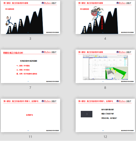 附件大?。?.46MB所屬分類:BIM資料分享會員:芳華分享時間:2021-09-10最后更新:資源簡介/截圖:機(jī)電安裝BIM應(yīng)用流程 一、建模:BIM基礎(chǔ) 二、用模:BIM目標(biāo) 三、成果:經(jīng)濟(jì)效益與社會效應(yīng)施工價值點分析·用模成本管理:提出精確工程量; 圖模合一(出圖):圖紙和模型準(zhǔn)確及統(tǒng)一是順利施工的基礎(chǔ); 交付有用的竣工模型:為運維提供有效依據(jù)。