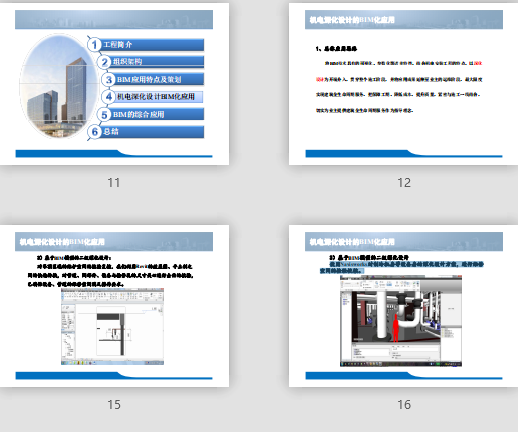 附件大?。?.49MB所屬分類:BIM資料分享會員:芳華分享時間:2021-09-08最后更新:資源簡介/截圖:內(nèi)容概要1、工程簡介 2、組織架構(gòu) 3、BIM應(yīng)用特點及策劃 4、機電深化設(shè)計BIM化應(yīng)用 5、BM的綜合應(yīng)用 6、總結(jié)BIM應(yīng)用特點及策劃 本項目應(yīng)業(yè)主要求需全程使用BIM技術(shù)開展深化設(shè)計,以直接出 專 布模 在滿 精 Revit直接出具施工圖紙,機電專業(yè)綜合排布模型在滿足精裝修標(biāo)高的同時,必須達(dá)到“零碰撞”要求。BIM資源標(biāo)準(zhǔn) : 1、計算機軟硬件配置標(biāo)準(zhǔn) BIM行為標(biāo)準(zhǔn): 11、命名規(guī)則 2、模型創(chuàng)建標(biāo)準(zhǔn) 3、模型精度標(biāo)準(zhǔn) 4 、BIM出圖標(biāo)準(zhǔn)BIM交付標(biāo)準(zhǔn): 1、業(yè)主、施工分包商模型交付標(biāo)準(zhǔn) 2、不同軟件之間數(shù)據(jù)交互標(biāo)準(zhǔn) 3、文本及圖形文件整理歸檔標(biāo)準(zhǔn)本項目BIM應(yīng)用標(biāo)準(zhǔn)1、編制并執(zhí)行《我局SOHO天山廣場項目BIM應(yīng)用實施方案》。 2、執(zhí)行《我局建筑信息模型( )作業(yè) 信息模型(BIM)作業(yè)指導(dǎo)手冊》。機電深化設(shè)計的BIM化應(yīng)用11、總體應(yīng)用思路 總體應(yīng)用思路 將BIM技術(shù)具有的可視化、參數(shù)化等諸多特性,結(jié)合機電安裝工程的特點,以深化設(shè)計為開端介入,貫穿整個施工階段,并將應(yīng)用成果延伸至業(yè)主的運維階段。最大限度實現(xiàn)建筑全生命周期服務(wù)。把保障工期、降低成本、提升質(zhì)量,緊密與施工一線結(jié)合,切實為業(yè)主提供建筑全生命周期服務(wù)作為指導(dǎo)理念。2、應(yīng)用流程介紹 1)傳統(tǒng)深化設(shè)計的部分流程保留 通過傳統(tǒng)機電深化設(shè)計解決系統(tǒng)的優(yōu)化校核和主管線的綜合排布。為構(gòu)建高精度模型提供前提保障。 在初級深化的基礎(chǔ)上 開展模型構(gòu)建工作 一方面可以極大程度上減少整體應(yīng)用過 在初級深化的基礎(chǔ)上,開展模型構(gòu)建工作,一方面可以極大程度上減少整體應(yīng)用過程的工作量,另一方面可以保證模型構(gòu)建使用的原始圖紙的時效性。 2) 初級BIM模型構(gòu)建:設(shè)計復(fù)核 a)BIM負(fù)責(zé)人編制BIM模型構(gòu)建節(jié)點計劃,確定實際選用的各設(shè)備的品牌、型號、參數(shù),校核現(xiàn)場基礎(chǔ)澆筑情況。 b)各專業(yè) 程師依據(jù)選用圖紙 構(gòu)建建筑結(jié)構(gòu) 管線 設(shè)備 模型 b)各專業(yè)BIM工程師依據(jù)選用圖紙,構(gòu)建建筑結(jié)構(gòu)、管線、設(shè)備BIM模型。 c)完成各專業(yè)模型鏈接組裝。 d)利用BIM相關(guān)軟件的碰撞檢測功能,對初級深化進行校驗,并根據(jù)導(dǎo)出的分析報 利用 相關(guān)軟件的 撞檢測功能 對初級深化 行校 并根據(jù)導(dǎo)出的分析報告逐個排除問題。 通過以上兩個階段,基本保證了機電系統(tǒng)排布方案、系統(tǒng)參數(shù)的合理性以及凈高滿足相關(guān)方面要求 足相關(guān)方面要求。模型精度達(dá)到 模型精度達(dá)到LOD300。3) 基于BIM模型的二級深化設(shè)計:各專業(yè)協(xié)調(diào) 以初級深化的BIM模型為基礎(chǔ),進一步開展二級深化設(shè)計。將機電管線復(fù)雜、建 以初級深化的BIM模型為基礎(chǔ),進 步開展二級深化設(shè)計。將機電管線復(fù)雜、建筑結(jié)構(gòu)異形、凈高要求嚴(yán)格和機電管線安裝操作存在的問題,利用軟件生成剖面詳圖及對應(yīng)的三維大樣圖,如下圖(均由模型直接導(dǎo)出) 對吊頂區(qū)域的維護空間的校驗復(fù)核,我們利用Revit的效果圖、平立剖之間的快速轉(zhuǎn)換,對管道、閥部件、設(shè)備與檢修孔的尺寸關(guān)心進行全面的校驗,已確保設(shè)備、管道的維修空間滿足操作要求。使用Navisworks對制冷機房等設(shè)備房的深化設(shè)計方案,進行維修空間的檢驗校核。