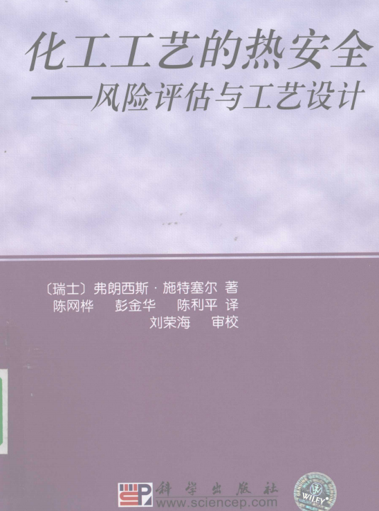【參考文獻(xiàn)格式】弗朗西斯·施特塞爾. 化工工藝的熱安全 風(fēng)險(xiǎn)評(píng)估與工藝設(shè)計(jì). 北京:科學(xué)出版社, 2009.08.